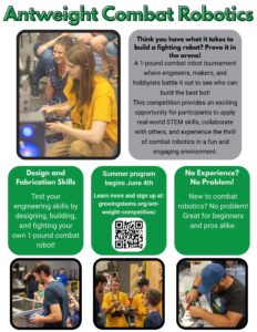 Learn more about the Summer Program which begins June 4th, sign up at growingstems.org/ant-weight-competition/